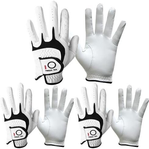 FINGER TEN Golf Gloves Men Right Left Handed Golfer 3/6 Pack Mens Golf Glove Left Right Hand Soft Cabretta Leather All Weather Grip Size S M ML L XL