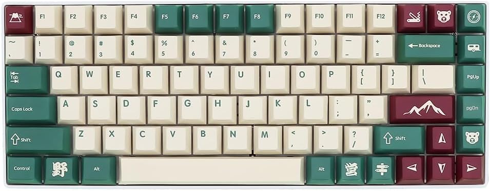 Green White Red Camping Color Design Keycaps Keycaps For Cherry Mx Switch Mechanical Keyboard Cherry Profile Japanese Character Key Caps Package include keycaps only