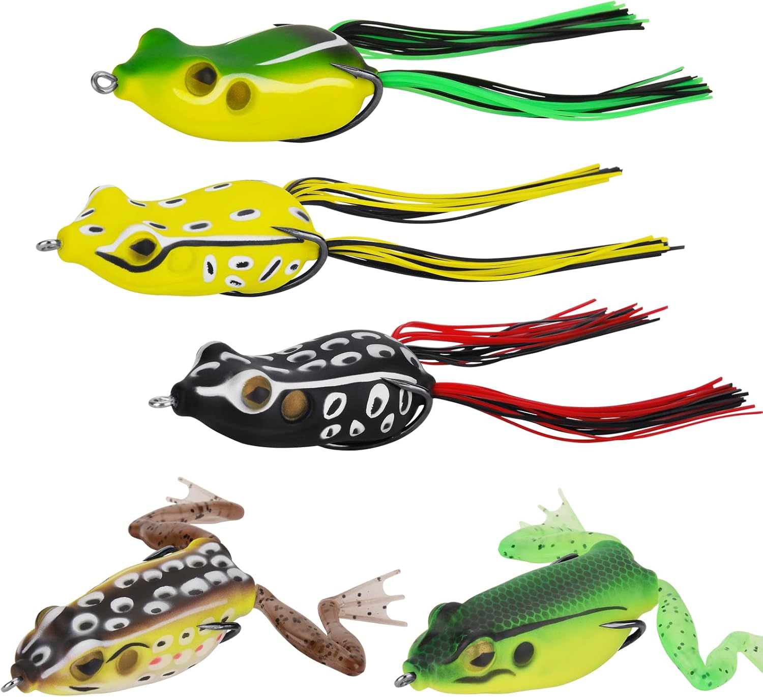 MadBite 5 Pack Frog Lure Kits Fishing Lures, includes 3 Sillicon Leg Frogs and 2 Kicking Leg Frogs, with Stinger Hook