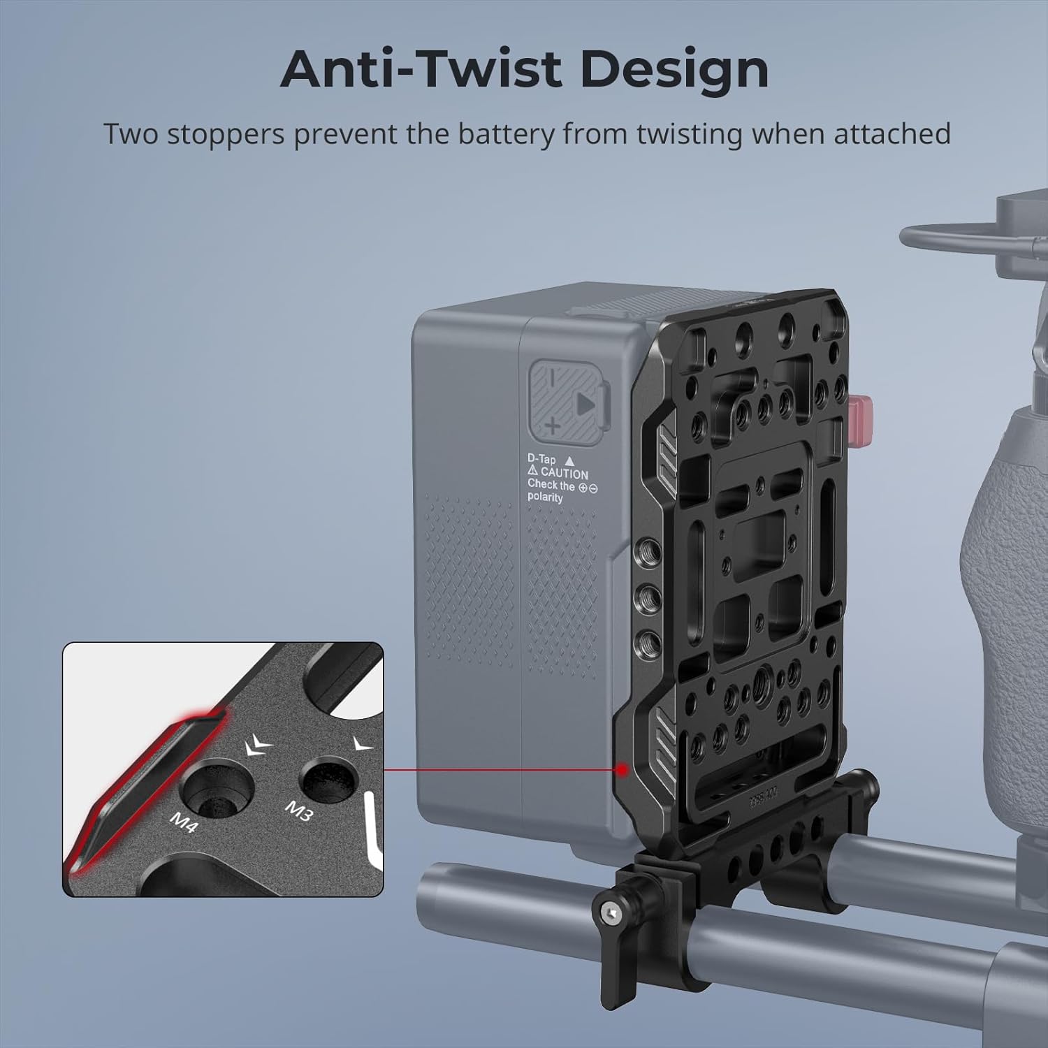 Placa de batería de montaje V de SMALLRIG, Placa de batería de montaje V con abrazadera de varilla dual de 15mm, orificios roscados de 1/4"-20 y 3/8"-16, Montaje V Batería VB99 SE / VB99 / VB99 Pro, para Neewer PS099E