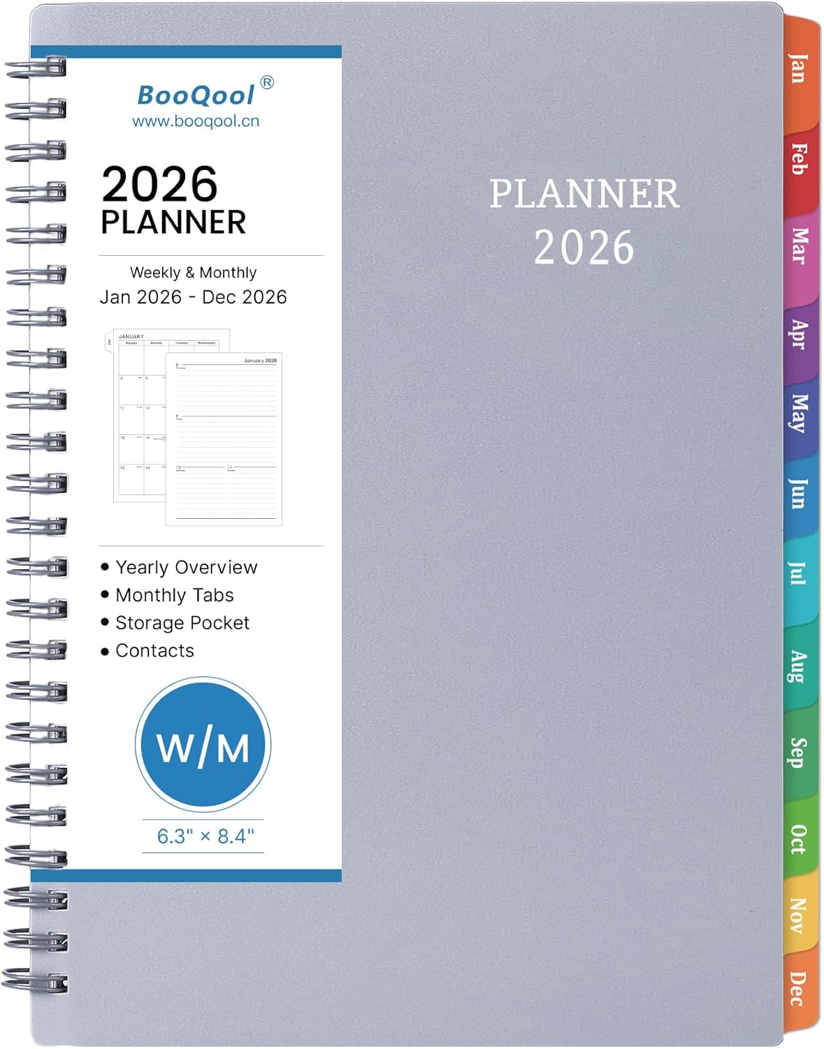 OVERVIEW - January 2026 - December 2026, this 2026 planner is 6.25" x 8.3" (A5 Size), featuring 12 months of monthly and weekly pages for easy year-round planning. Premium quality covers and twin-wire binding, metal lay-flat spiral binding, excellent texture, with classic and stylish combinations of appearance.