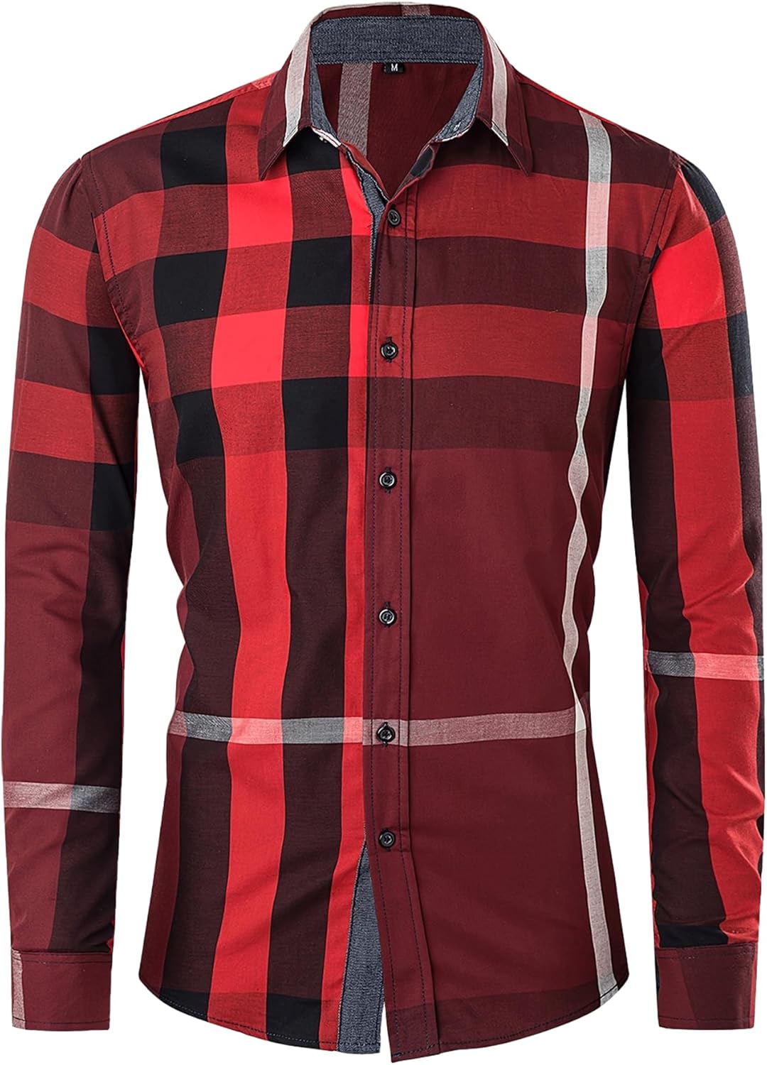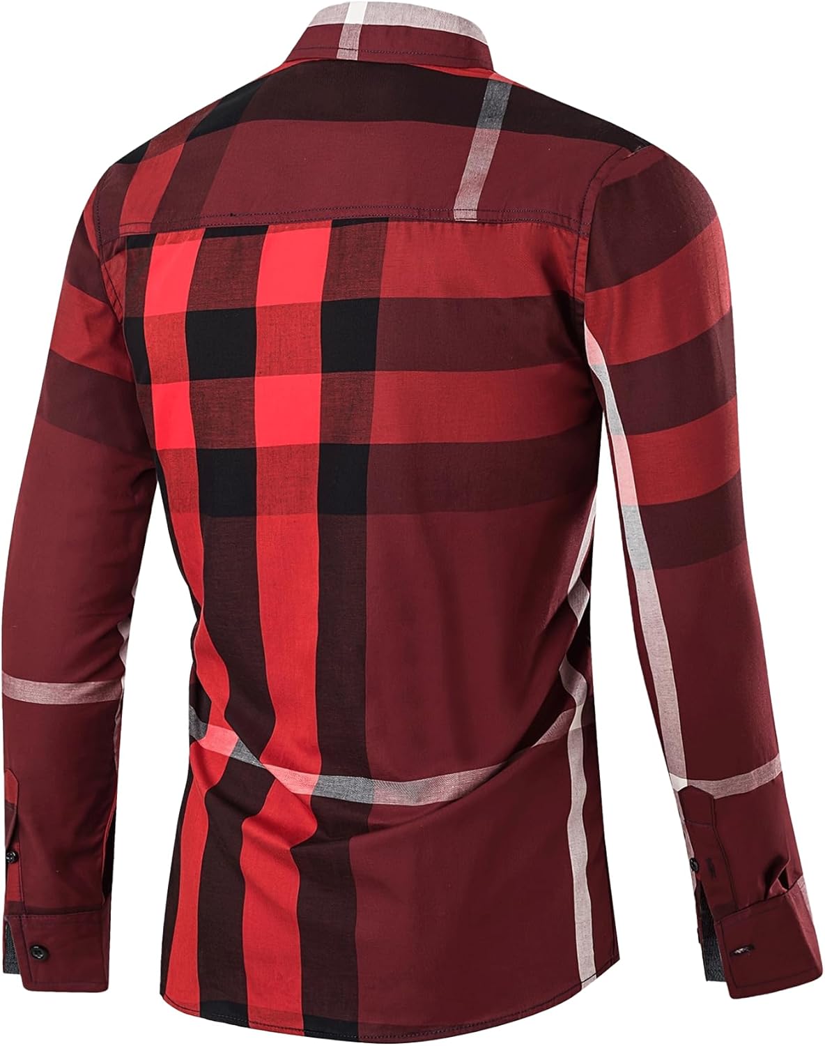 FREDD MARSHALL Men's Long Sleeve Slim Fit 100% Cotton Plaid Shirts