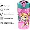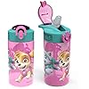 Zak Designs Kids Durable Plastic Spout Cover and Built-in Carrying Loop, Leak-Proof Water Design for Travel, (16oz, 2pc Set), Paw Patrol Skye Bottle 2pk