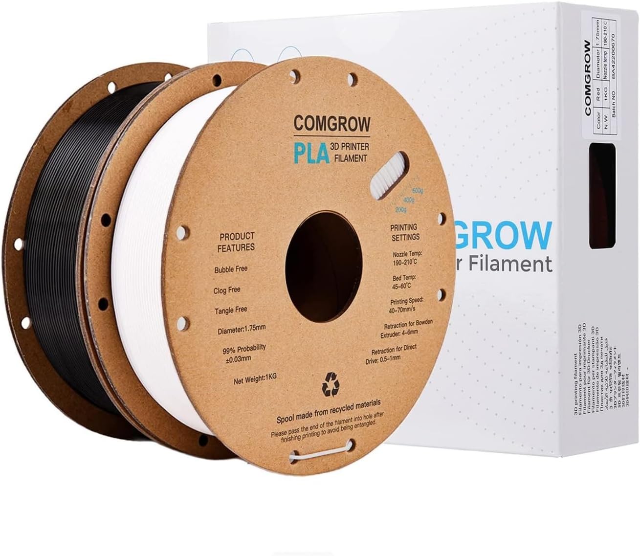 Comgrow PLA 3D Printer Filament, 3D Printer PLA Filament 1.75mm, Dimensional Accuracy +/- 0.02 mm, 1KG Spool PLA Black and White