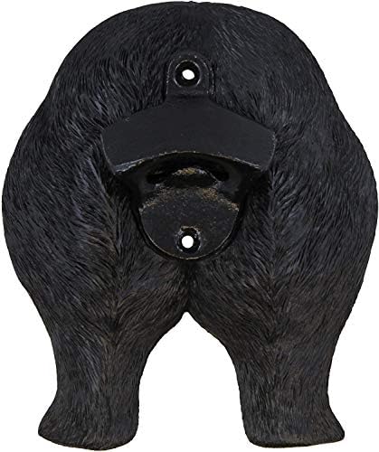 Useful conservation piece. Decorate your favorite wall with this whimsical Bear Butt Bottle Opener. Cast Iron opener attached to a realistic bear butt base. Mounting hardware included. 6.5" x 5.5" x 1.5", Mounts to wall. Hardware included.