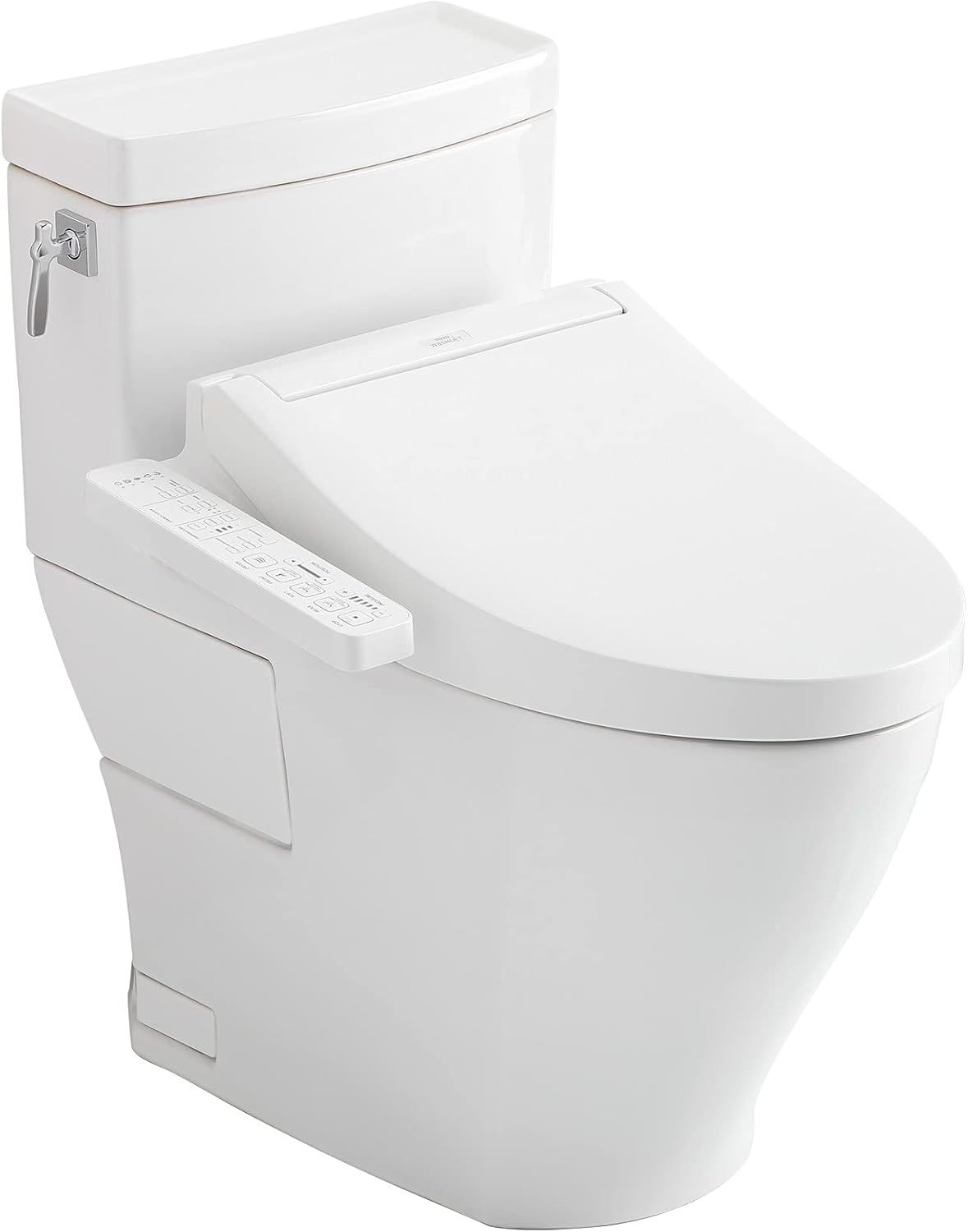 TOTO®WASHLET+® Aimes One-Piece Elongated 1.28 GPF Toilet and WASHLET C2 Bidet Seat, Cotton White - MW6263074CEFG#01