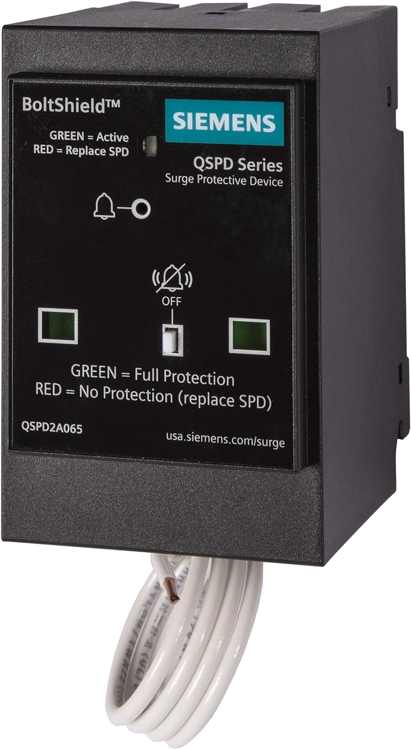 Los Dispositivos de Protección Contra Sobretensiones (SPD) proporcionan la mejor protección contra sobretensiones generadas tanto externamente como internamente cuando se ubican lo más cerca posible del sistema de distribución del edificio. La nueva serie QSPD de SPDs Siemens Boltshield son económicos y fáciles de instalar en la mayoría de los paneles Siemens en todo un edificio para obtener protección de toda la instalación. Proteja su hogar con 65kA de protección contra sobretensiones, con la opción de apilar SPDs para una protección adicional. Boltshield ofrece opciones de 2 y 3 polos para adaptarse a aplicaciones residenciales. Se adapta a la mayoría de los paneles Siemens.