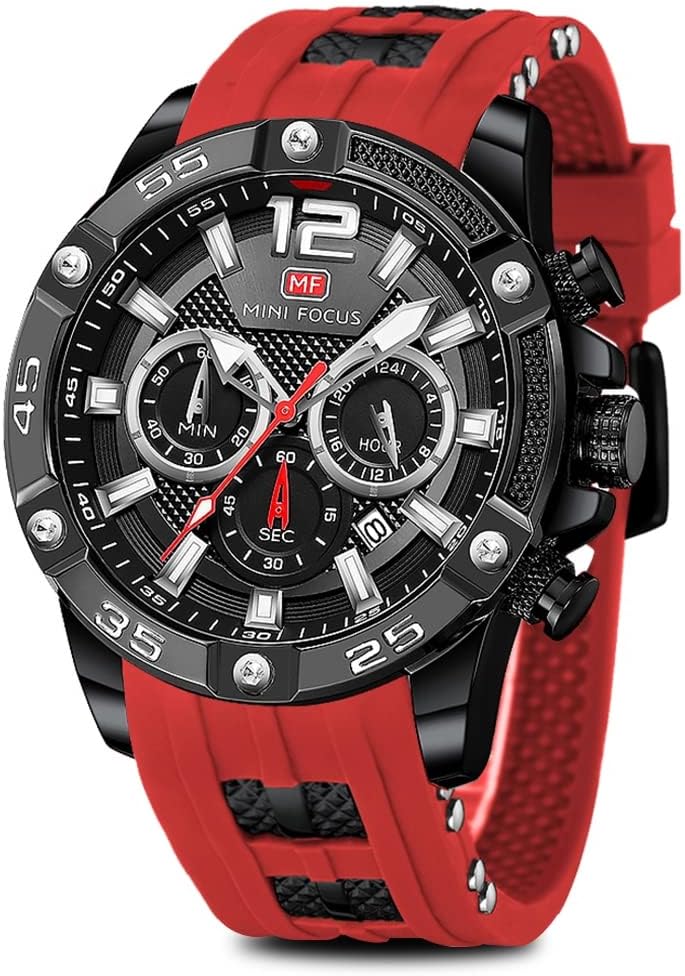 Reloj Deportivo Multifuncional Impermeable para Hombres, Relojes de Pulso Grandes para Hombres con Diseño Luminoso y de Moda -- Estilo Práctico y Duradero, combínalo con cualquier tipo de atuendo, desde negocios hasta deportes. ¡Ideal para el uso diario! Reloj de lujo elegante y moderno con diseño analógico innovador que es perfecto para cualquier ocasión. Parece mucho más caro de lo que cuesta. Un regalo de moda de valor para el padre, amigo masculino o compañeros de clase masculinos, colegas masculinos. Vidrio resistente a golpes y arañazos hecho de vidrio mineral endurecido, ideal para actividades tanto interiores como exteriores. Luminoso: Manos y Calibración Luminosas, conveniente para leer la hora en la oscuridad. Moda y Casual – Puedes combinar este reloj con cualquier tipo de ropa. Resistente al agua 3 ATM: Con el material resistente al agua, este reloj de pulsera de cuarzo está elegantemente diseñado para que nunca te pierdas una actividad de aventura, pero es solo apropiado para lluvia, salpicaduras de agua, lavado de manos, otros contactos ocasionales con agua, pero no para nadar, bucear o bañarse. Especificación del artículo: Material de la caja: Acero Inoxidable ·Material de la banda: Correa de Silicona Diámetro de la caja: 1.85 pulgadas / 47 mm - Grosor de la caja: 0.5 pulgadas / 12.8 mm - Ancho de la banda: 0.9 pulgadas / 24 mm - Longitud máxima de uso: 9.4 pulgadas / 24 cm - Peso del producto: 122g / 4.3oz Qué hay en el paquete: 1 * Reloj Militar para Hombre 1 * Instrucción en Inglés 1 * Caja de Reloj