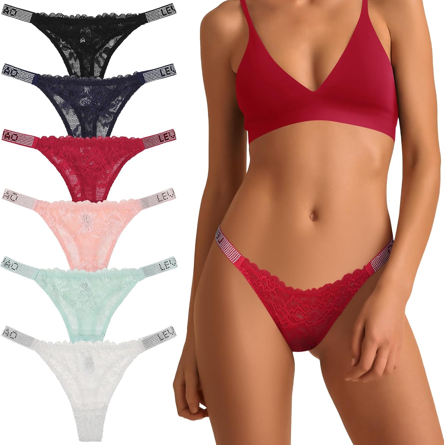 LEVAO Bragas Sexy, Tangas para Mujeres con Rhinestones de Letras, Tanga de Baja Costura, Pack de Ropa Interior Elástica (3-6 unidades, S-XL)