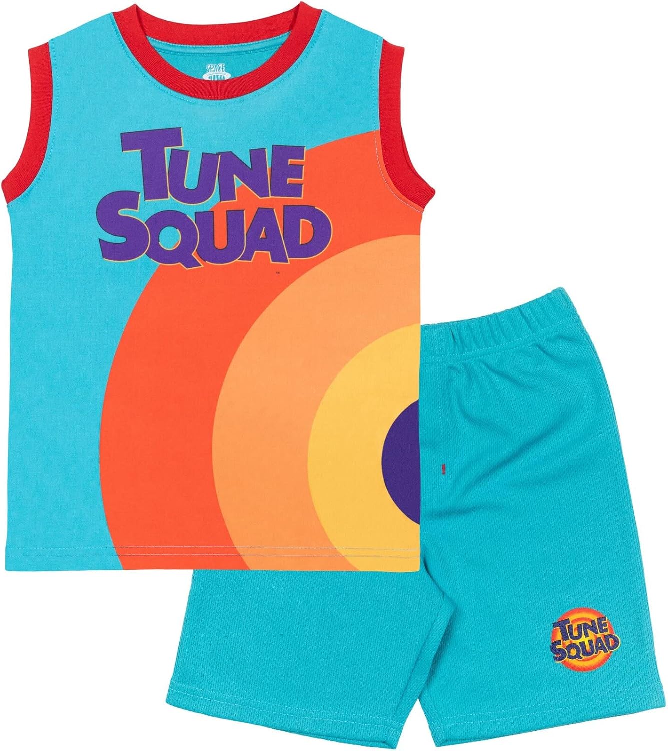 Get ready for a wacky Looney Tunes adventure in this cool Space Jam Sleeveless T-Shirt & Shorts! Grab a ball and join Bugs Bunny, Daffy Duck, Lola Bunny, Road Runner, Pepe Le Pew, Yosemite Sam, and the rest of the Tune Squad as they team up with basketball legends Michael Jordan and LeBron James to play some epic games. Your Looney Tunes fan will love wearing this sleeveless graphic tee shirt and cute and stylish shorts featuring the classic Tune Squad uniform and their favorite characters from the iconic Space Jam movies.