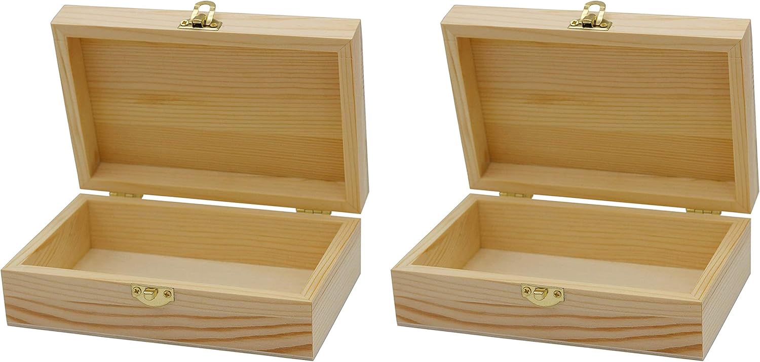 Creative Hobbies Unfinished Wood Craft Box – Light Unfinished Wood with Clasp – Make Your Own Gift Box, Jewelry Box, Photo Box - Decorate with Paint, Ribbon, Decoupage and More – 6" x 4" x 2" (1)