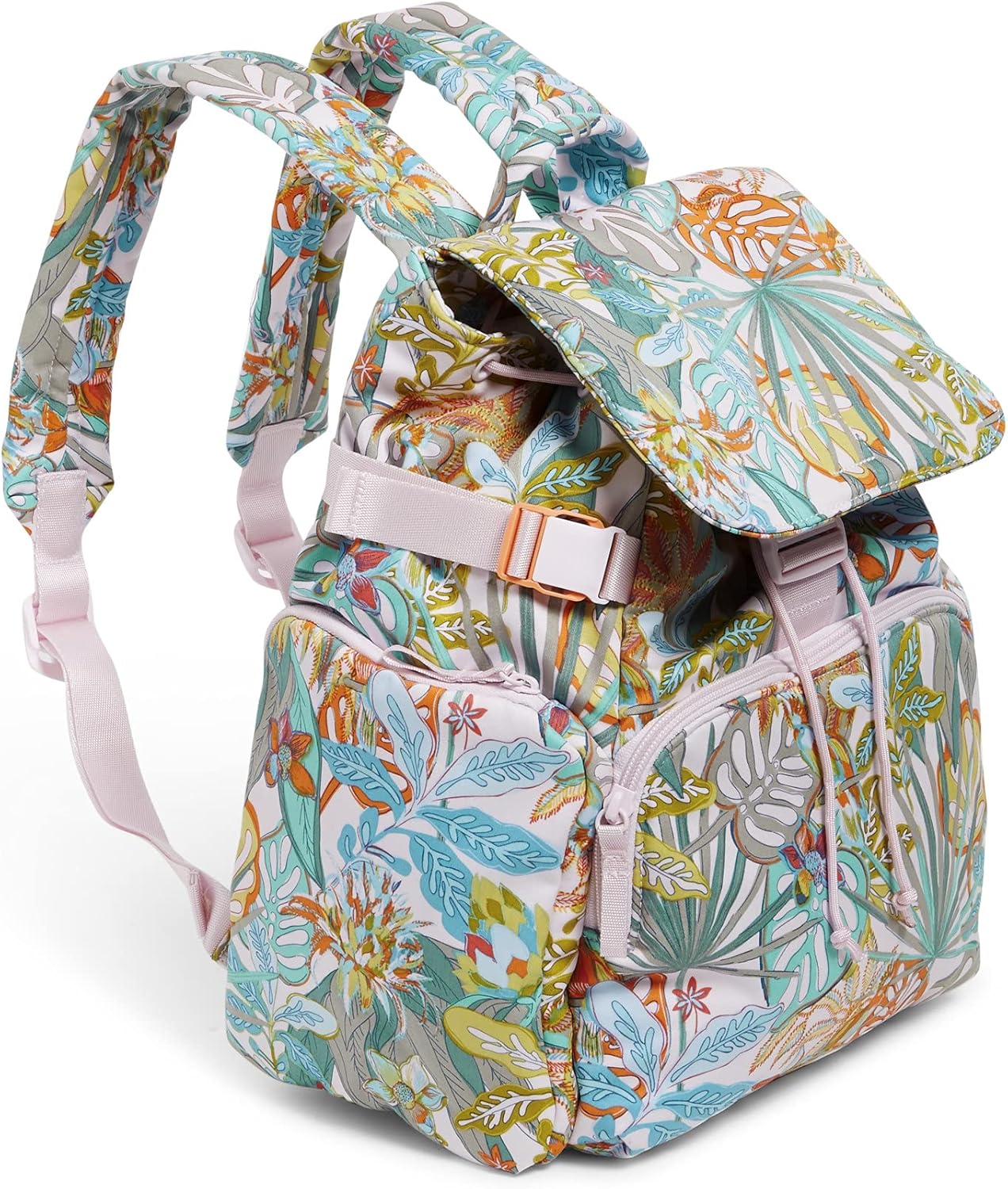 MACHINE WASHABLE RECYCLED COTTON - The cotton fabric that you're familiar with has been reimagined; this sustainable fabric is made from recycled cotton fibers and has all of the comfort, softness, and vibrancy that you know and love. HASSLE FREE COMMUTE -- The Utility Backpack features 2 side zip pockets and a front compartment with organization to keep all of your necessities close an easy to grab without opening your entire bag. ENDLESS ORGANIZATION -- The front zip compartment features 1 zip pocket, 2 slip pockets, & 1 pen pocket keep your essential supplies organized & quick to access. STYLISH, LIGHTWEIGHT & SIZED RIGHT -- The Utility Backpack measures 14 inches high, 10 inches wide, & 7 inches deep with a 3 inch top handle drop & 33 inch adjustable straps. Our cotton is colorful and recycled. Exterior features a front zip compartment featuring a pen slip, two slip pockets and a zip pocket and two side zip pockets. Interior features a slip pocket. Drawstring and buckle closures. Machine wash cold, gentle cycle, only non-chlorine bleach when needed; line dry. Vera Bradley is your back to school destination Our back packs are perfect for back to school, work, and travel, including backpacks for men, backpacks for women, backpacks for girls, and backpacks for boys. Our bookbags have plenty of organization, whether you are shopping for a large backpack or a mini backpack. 50% recycled cotton and 50% conventional cotton.