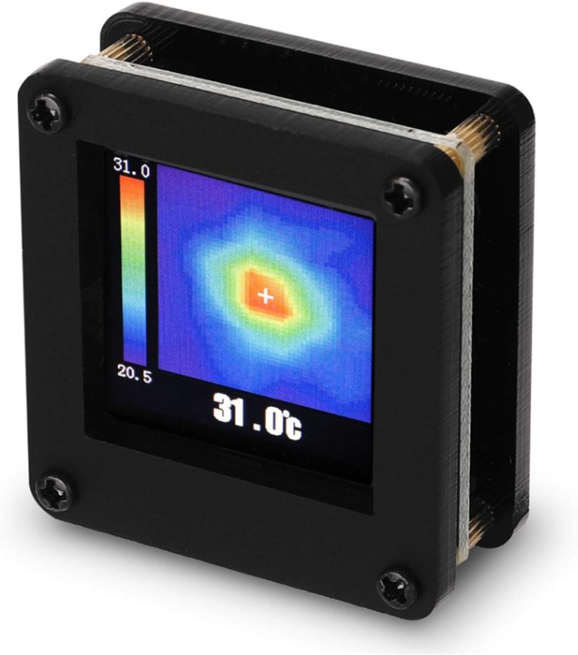 100% brand new and high quality Features This is an infrared thermal imager that combines the functions of surface temperature measurement and real-time thermal imaging. The traditional thermal imaging camera needs to measure each component one by one, while this instrument does not need to. Therefore, it helps to save your time. Even the potential problems can be clearly displayed on the color screen which helps users quickly locate the central point to measure cursor and temperature. Made of fine quality material, practical, easy to operate and use, wide application range, has a long service life. The module can be powered directly by USB 5V to produce infrared images. Use AMG8833 infrared thermal sensor. The resolution is 8x8, and the farthest detection distance is 7 meters. It can be applied to check electronic products. Portable and compact, high performance, easy to use. Specification Product name Infrared Thermal Imager Temperature accuracy High performance type high gain typical ±2.5Degree C ±4.5 Degree F High performance type low gain typical ±3.0Degree C ±5.4 Degree F Human detection distance 7m or less reference value 22.966 ft NETD Typ. 0.05Degree C 32.900 Degree F 1Hz Typ. 0.16Degree C 32.288 Degree F 10Hz Viewing angle typical 60 Degree Optical axis within typical ±5.6 Degree Current consumption Typical 4.5mA normal mode Typical 0.2mA sleep mode Typical 0.8mA stand-by mode