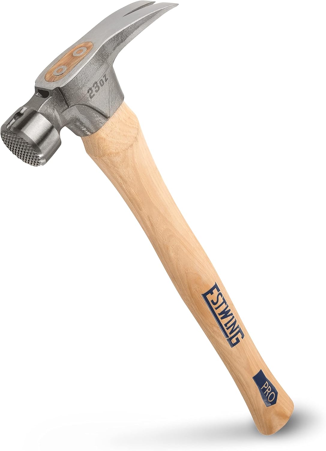 ESTWING Pro California Hammer - 23 oz Rip Claw Hammer with Milled Face & Hickory Wood Handle - MRW23LM