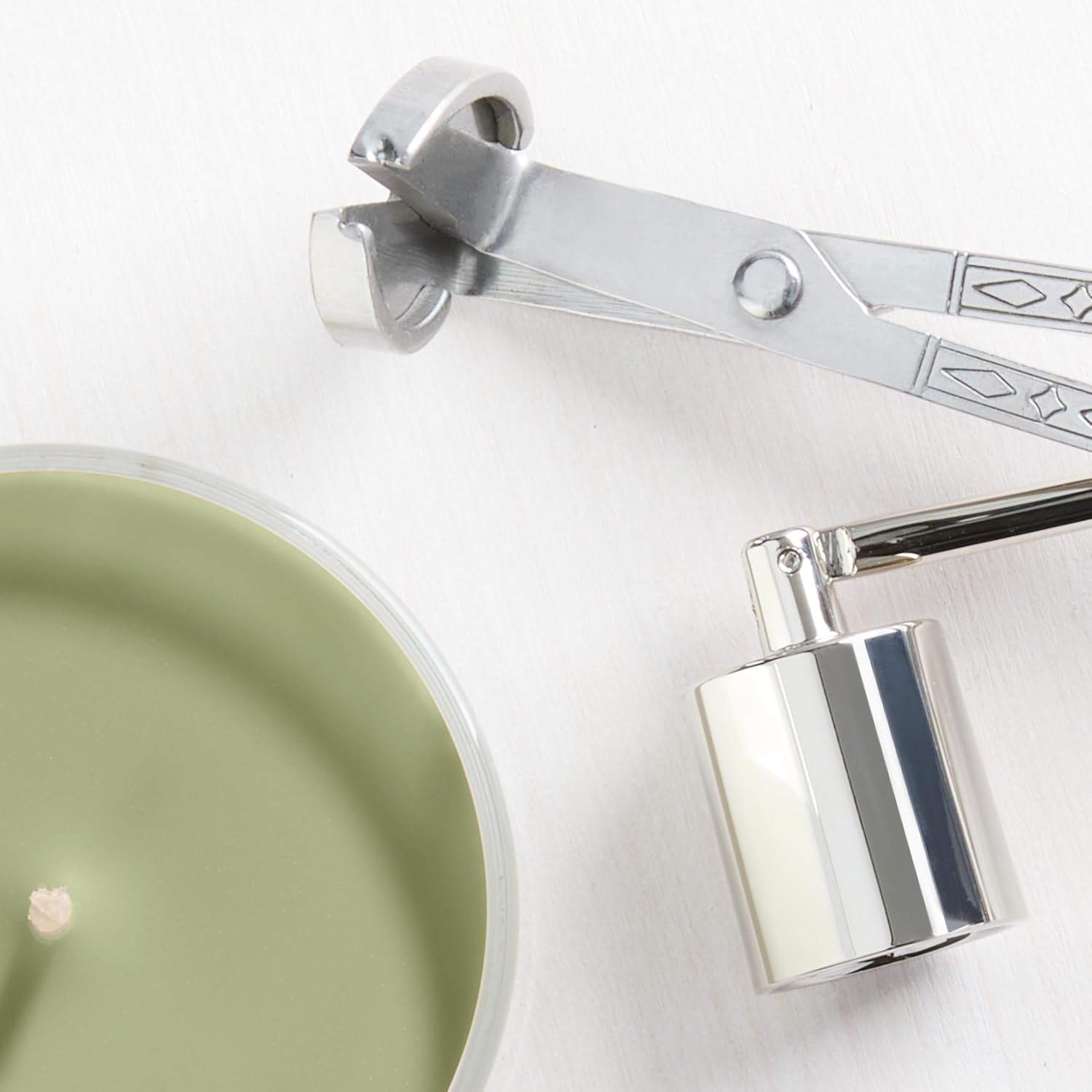 Brushed silver-tone lid protects wax from dust and debris in between burns