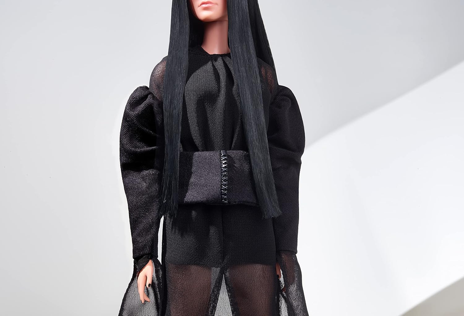La muñeca Barbie Vera Wang es totalmente plegable y viene vestida con un conjunto monocromático inspirado en un look de su colección prêt-à-porter de 2017.