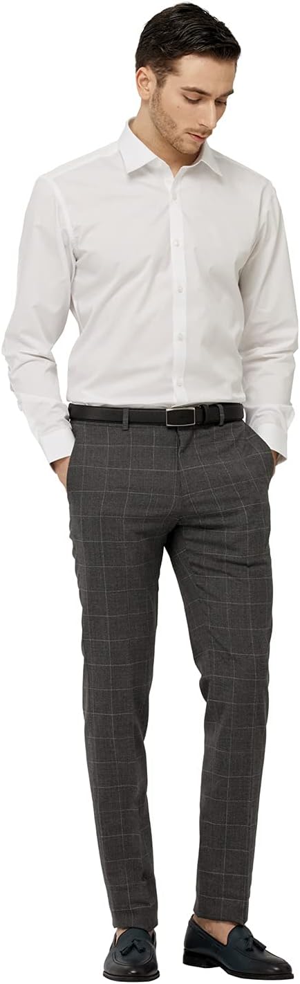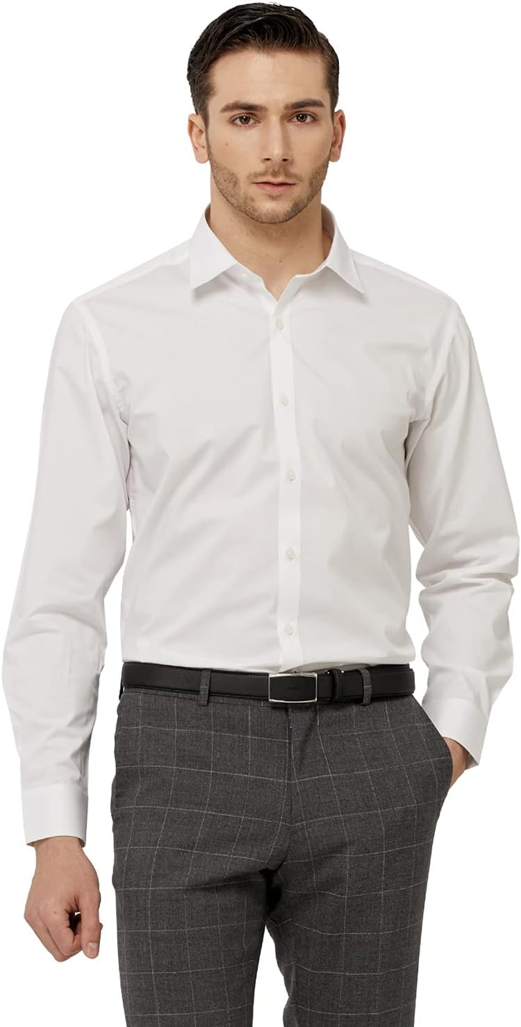 Camisa de vestir YEZAC de algodón de manga larga para hombre, lisa, ajustada, casual, cómoda, resistente a las arrugas