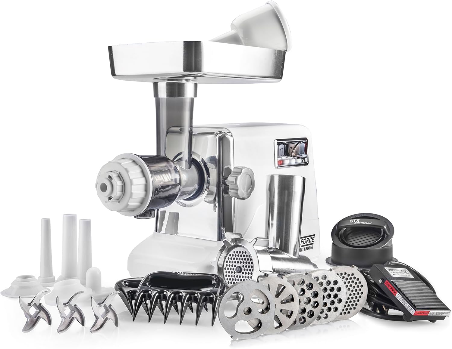 STX International Turboforce 3000 Series 7-in-1 Electric Meat Grinder | 3000W Max | 3-Speed | Foot Pedal | Juicer | 5 Grinding Die | 3 Stainless Steel Blades | Sausage Stuffer | Kubbe Maker & More