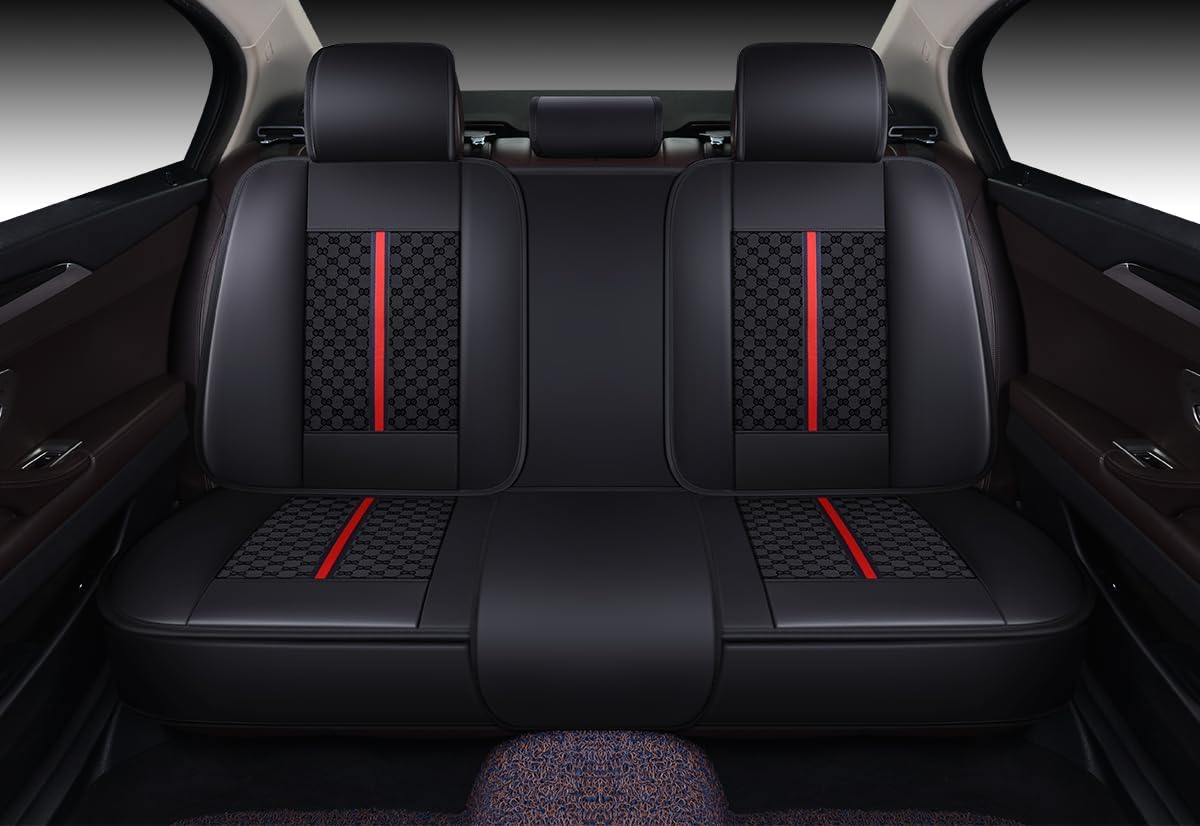 OASIS AUTO Car Seat Covers Premium Waterproof Faux Leather Cushion Universal Accessories Fit SUV Truck Sedan Automotive Vehicle Auto Interior Protector Full Set (OS-007 Black)