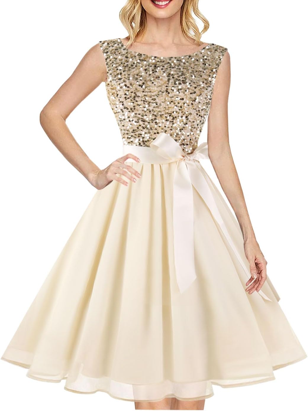 Hanpceirs vestido de cóctel vintage de los años 50, sin mangas, cuello barco, para mujer