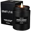 Craft & Kin Premium Smoke & Vanilla Candle | Black Fall Scented Candles for Men | Long Lasting with 45 Hour Burn Time, 7.6oz | Made with Soy | Aromatherapy at Home | Gifts for Men