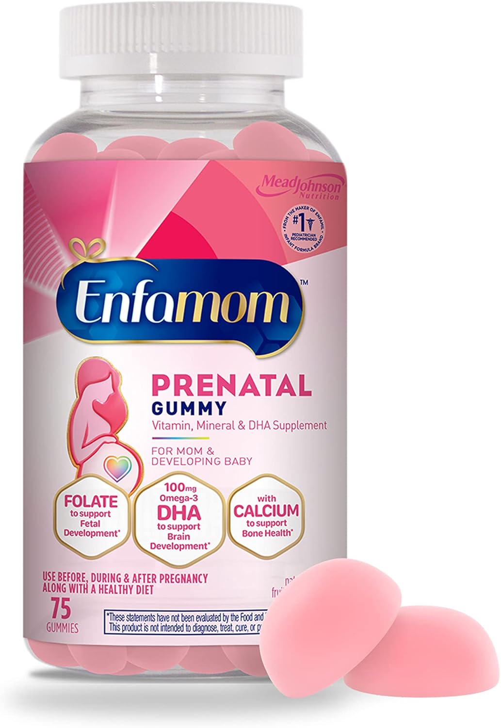 Enfamom Prenatal Multivitamin, 75 Gummies, Supplement for Pregnant and Lactating Women from Enfamom, Omega-3 DHA + Folate (as Folic Acid) + Calcium + Iodine, Zinc, Vitamin D, Raspberry Lemon Flavor