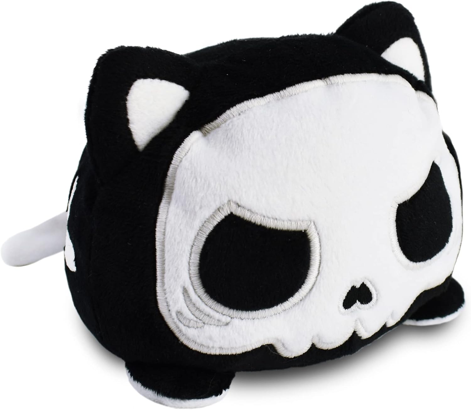 TeeTurtle - The Original Reversible Cat Plushie - White + Skeleton - Glows in the Dark! - Cute Sensory Fidget Stuffed Animals That Show Your Mood - Perfect for Halloween!, 4 inch
