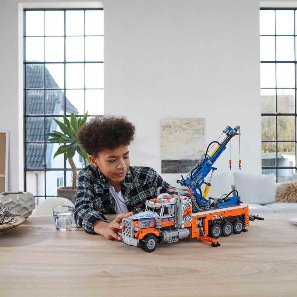 LEGO 42128 Technic Camión de Remolque Pesado con Grúa Juguetes para Niños y Niñas con Funciones Mecánicas, Modelo de Construcción, Serie de Ingeniería para Niños