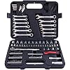 VARIEDAD: contiene una amplia gama de llaves combinadas de tamaños SAE y métrico, enchufes de 3/8 y 1/4 de pulgada, mango de trinquete de 3/8 pulgadas, llave hexagonal y puntas de destornillador de 1/4 de pulgada,