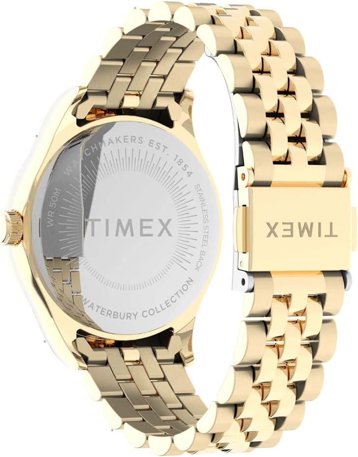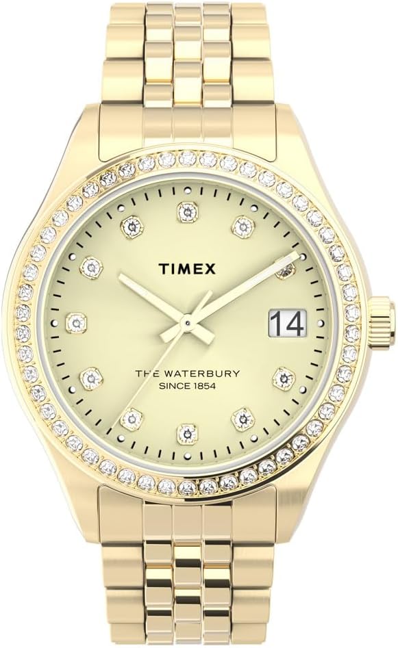 Timex Women's Waterbury Legacy 34mm Watch – Gold-Tone Dial & Stainless Steel Bracelet with Crystals