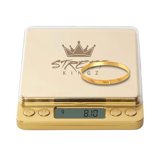 Street Kingz Gold Digital Jewelry Scale - 500g High Precision Food Scale with Multi-Unit Conversion & Piece Counting - Portable Small Digital Scale, Includes 2 Weighing Bowls