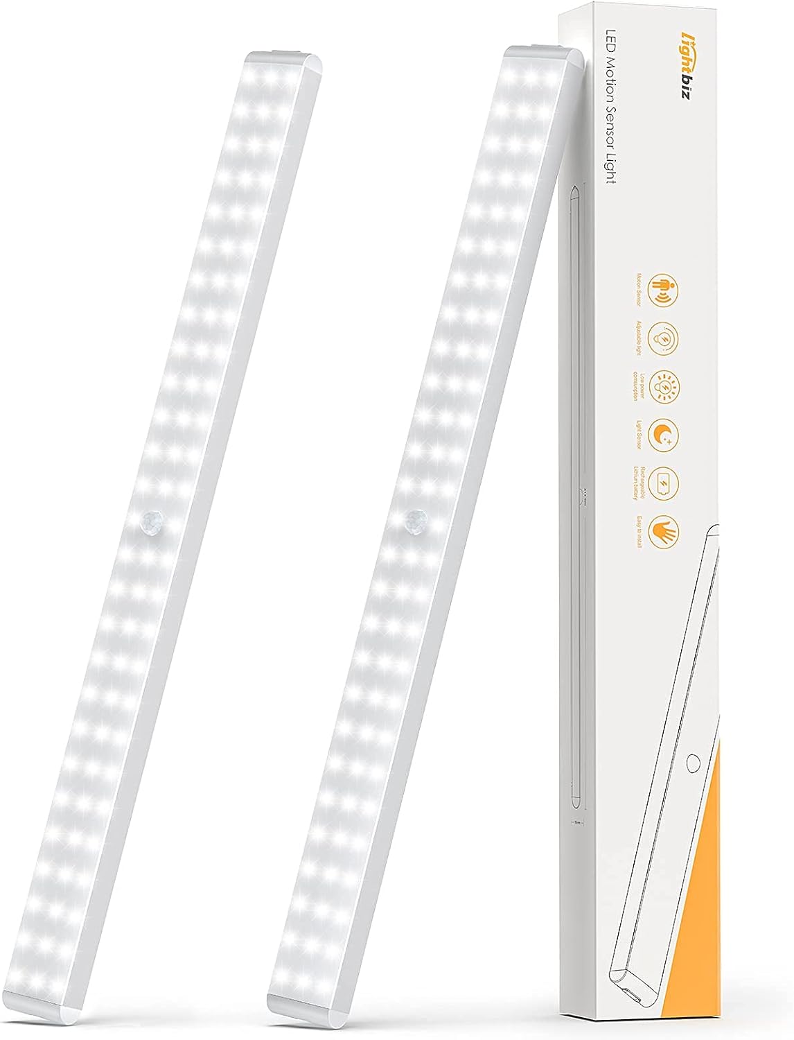 Lightbiz Under Cabinet Lighting, Dimmable 80-LED Closet Lights Wireless Under Counter Light 3000mAh Battery Night Safe Lights Stick-on Anywhere for Kitchen,Stair,Pantry (2 Packs)