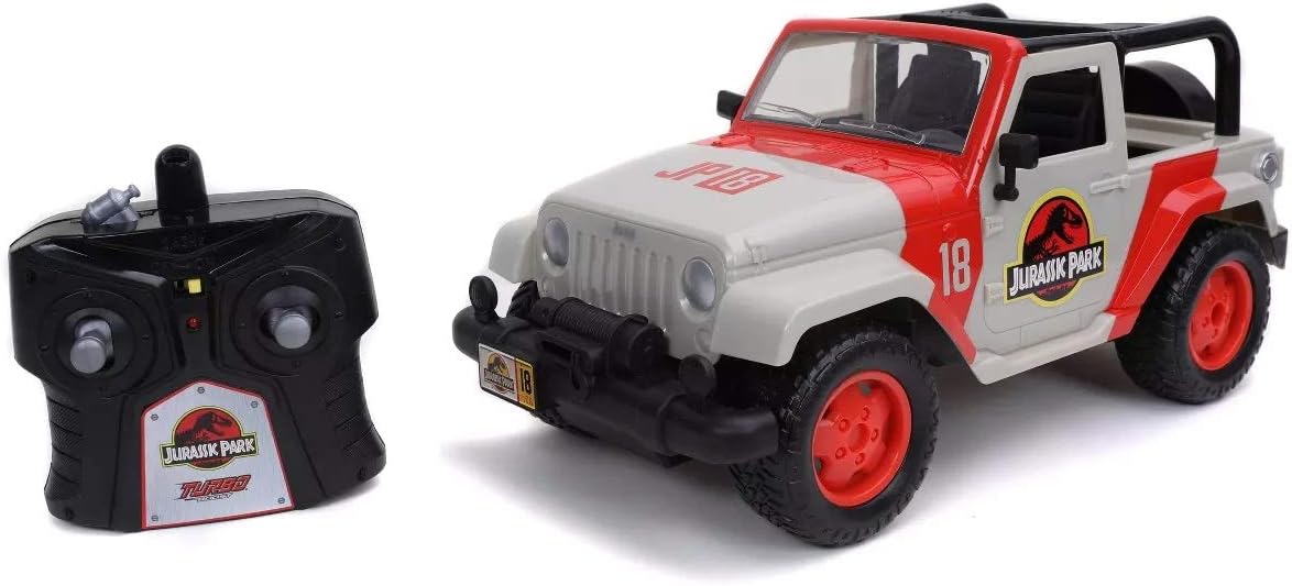 Jada Toys Jurassic World Hollywood Ride Jurassic Park Jeep Wrangler Remote Car Hollywood Rides Jurassic Park Jeep Wrangler - 1:16 Scale Radio Control Vehicle