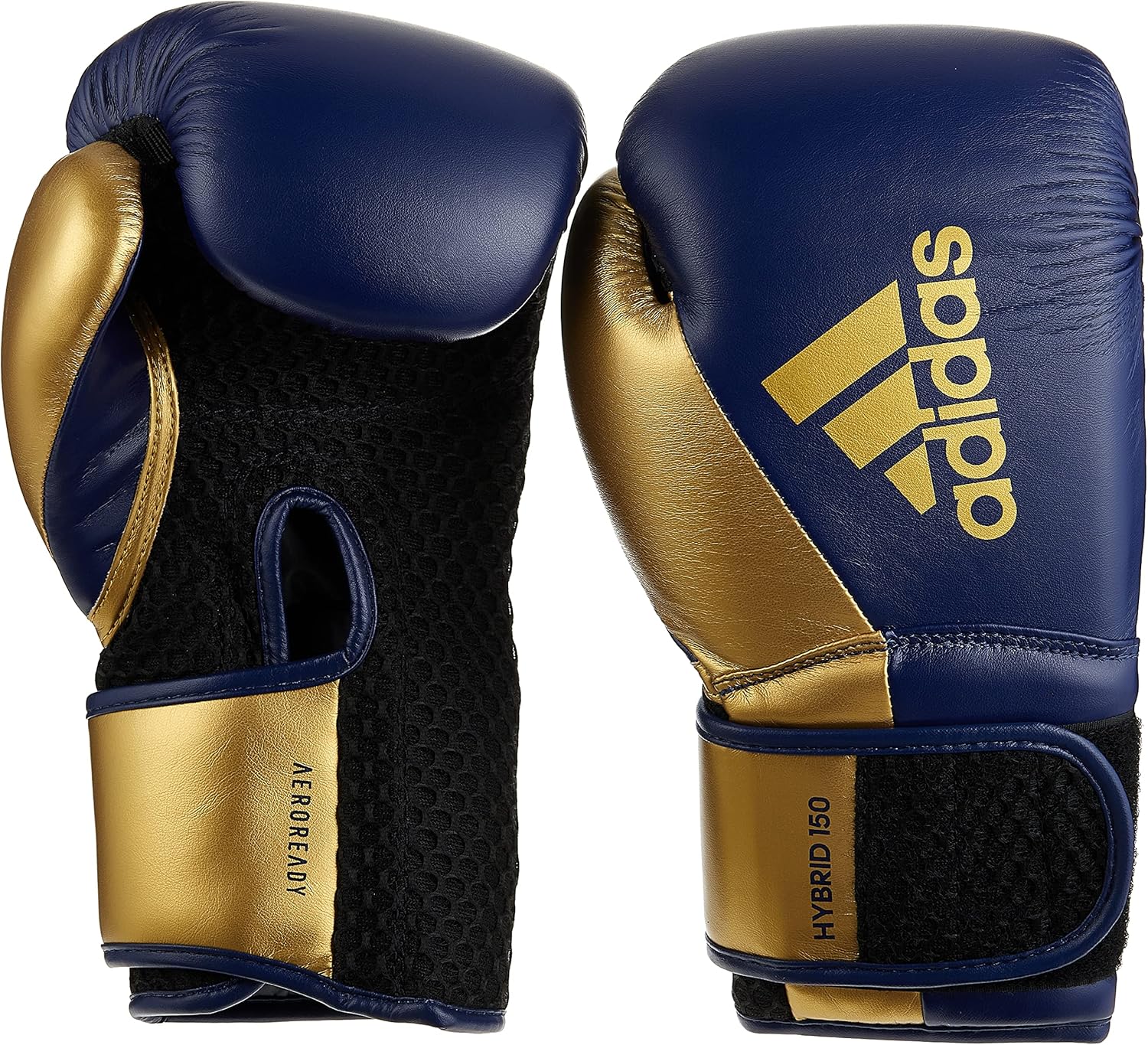 Guantes de Boxeo adidas - Hybrid 150 - Boxeo, Kickboxing, MMA, Entrenamiento y Uso en Casa - para Mujeres - Peso 10, 12Oz - Color Azul Oscuro/Dorado
