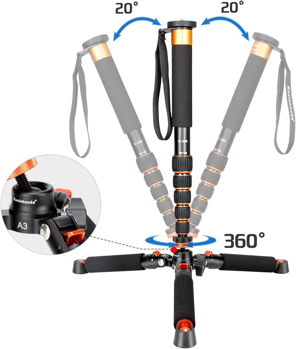 ★Tripod base can help the monopod achieve 360 degree panoramic rotation and tilt of 20 degrees,with 1/4" and 3/8" screw can be used as a desktop mini tripod.