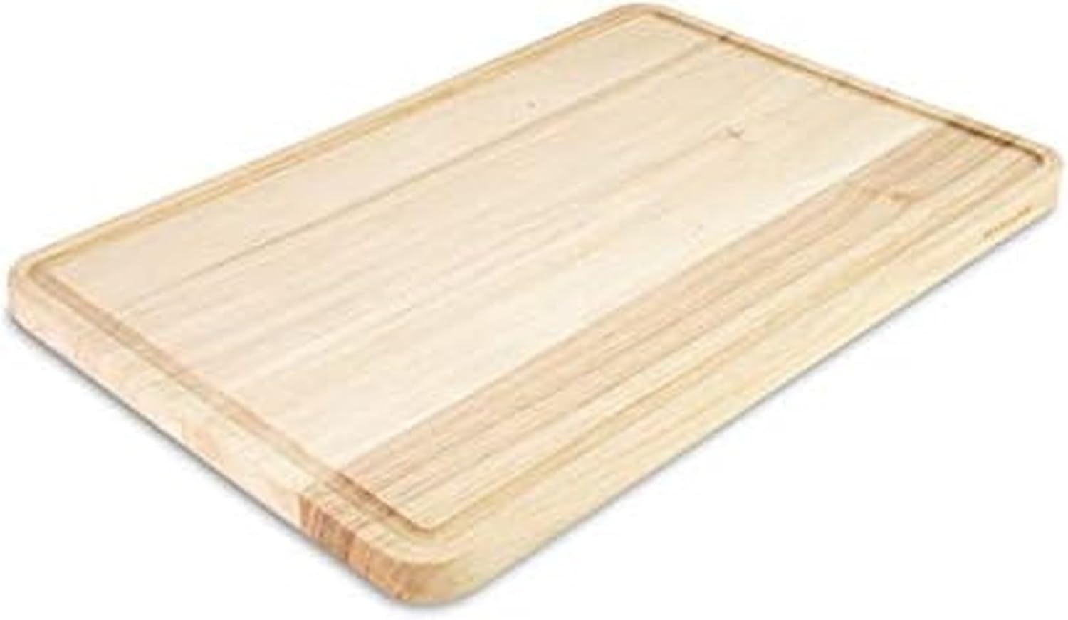 This KitchenAid® Classic 12x18 wood utility board is expertly designed to provide an exceptional experience, whether for cutting, slicing, dicing, mincing, or chopping. This utility board features a perimeter trench to catch excess liquids for easy cleanup. Crafted from rubberwood, this board is engineered to maintain its shape over time for long-lasting durability and is gentle on knives. Hand washing with warm water and a mild detergent is recommended. Dry immediately.