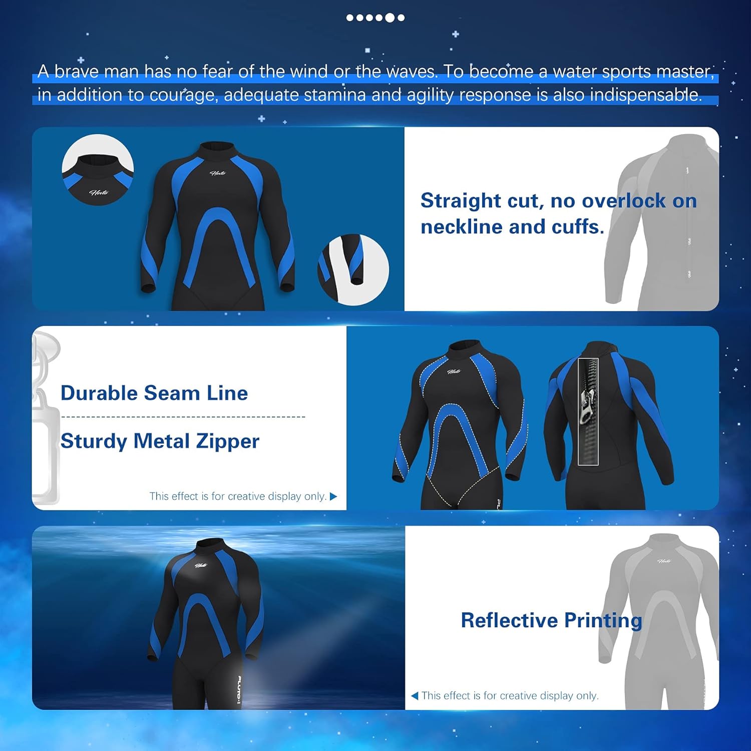 Material de Alta Calidad y Inofensivo: Neopreno SBR + Telas de Nylon (Dos Capas: Superficie/Forro). Cierre de cremallera en la espalda. Grosor de 3/2MM, traje de neopreno completo, mangas largas.