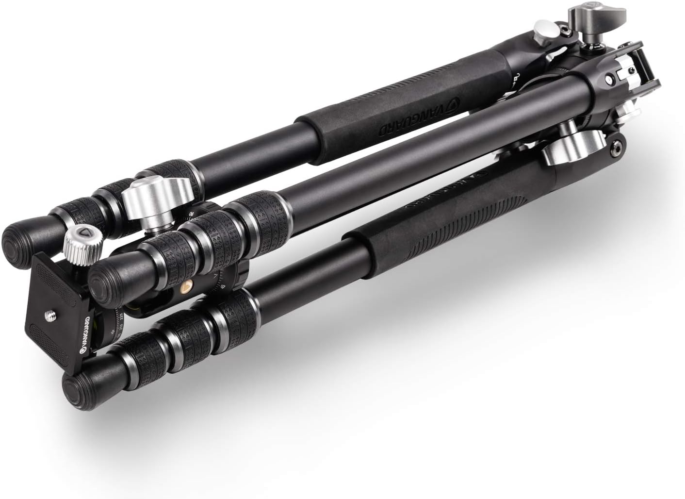 Travel-style aluminum tripod with reversible legs for easy, compact folding. 3 easy-set leg angles – move from full height to low angles in seconds