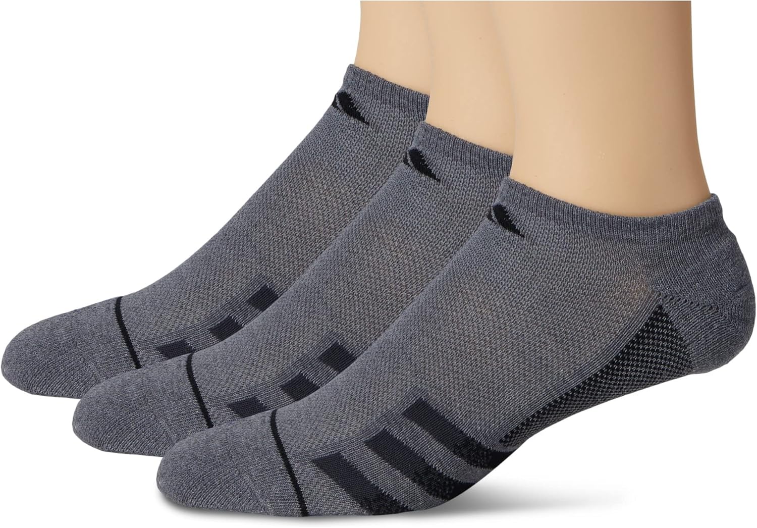 Refresca tu suministro de calcetines de entrenamiento. Estos calcetines sin muñequera para hombre de adidas están hechos de hilo ligero para una sensación casi inexistente. La malla en la parte superior del pie mantiene el aire circulando para alejarte el calor. Vienen en un paquete de tres.