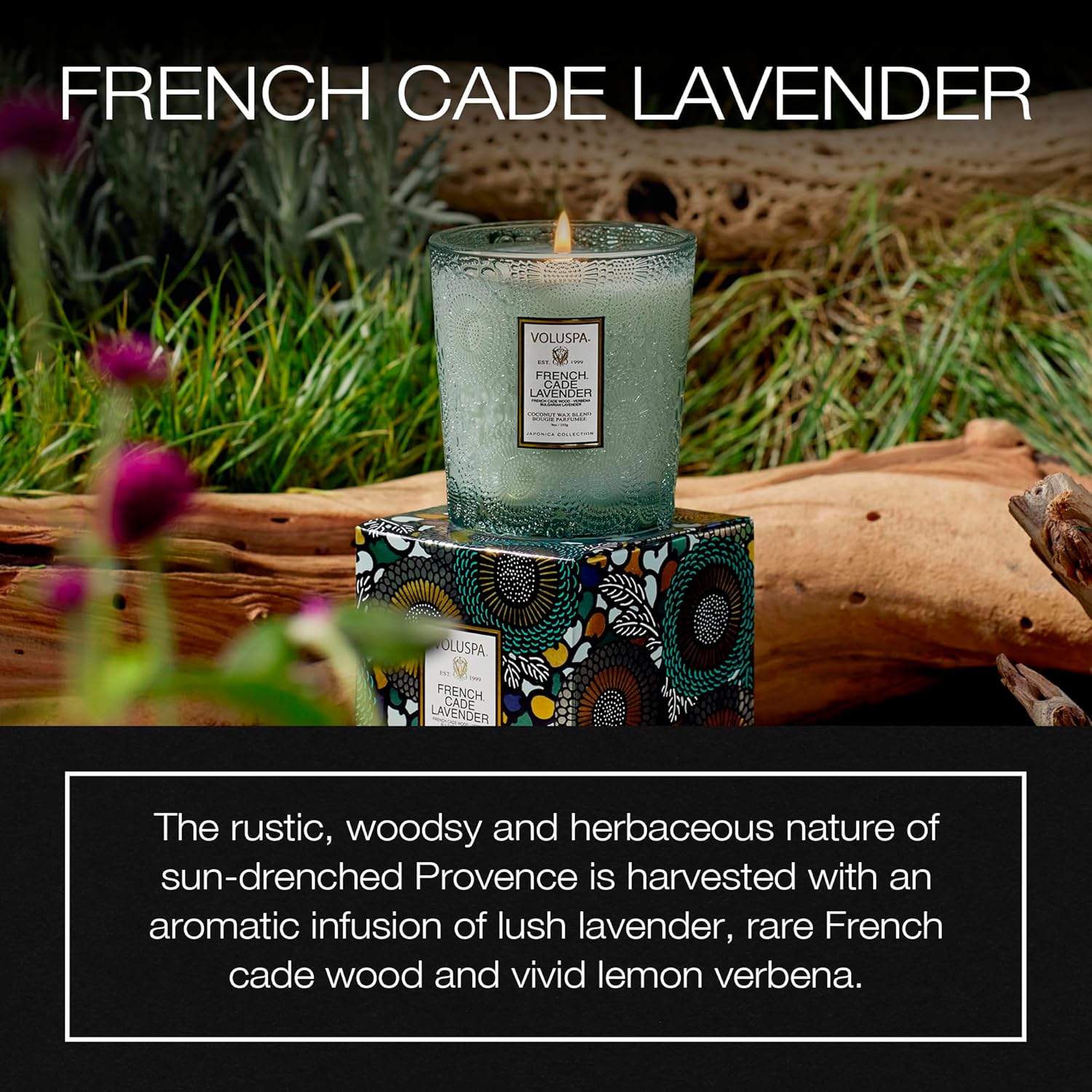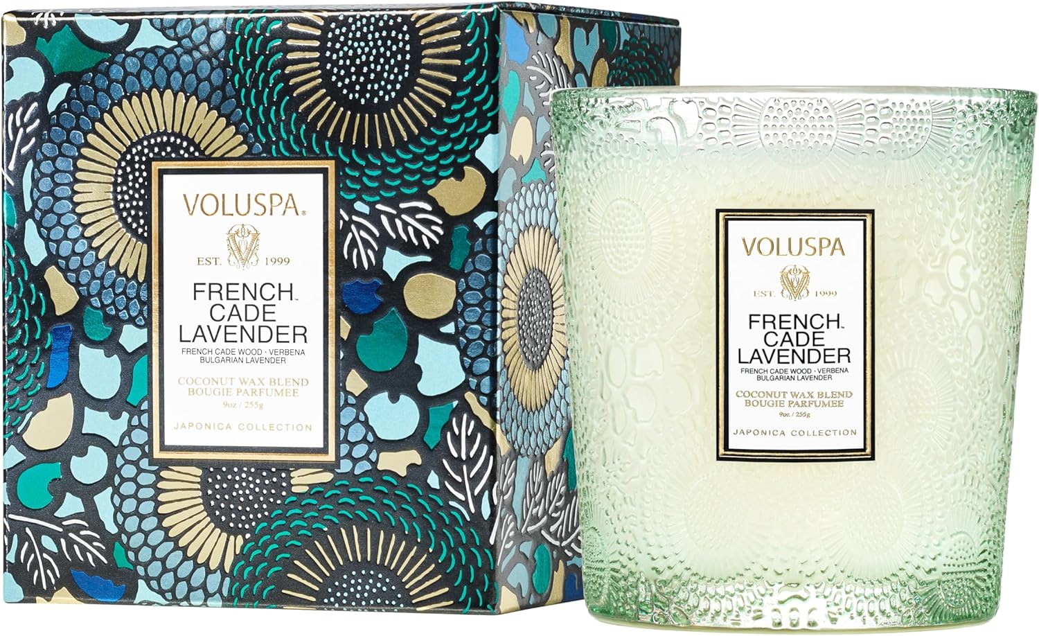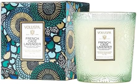 Voluspa French Cade Lavender, Classic Boxed Candle, 9 oz, 60 Hour Burn Time, Coconut Wax for Clean Burning, Handcrafted in The USA