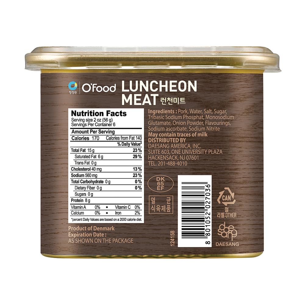 Chung Jung One O'Food Luncheon Meat (2 Pack), Premium Spam Pork Canned Meat, Ready-To-Eat, Pantry Staple, Pack of 2