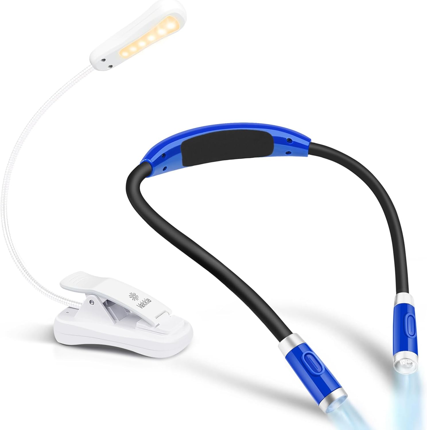 4 LED Blue Neck Reading Light and 6 LED White Book Light