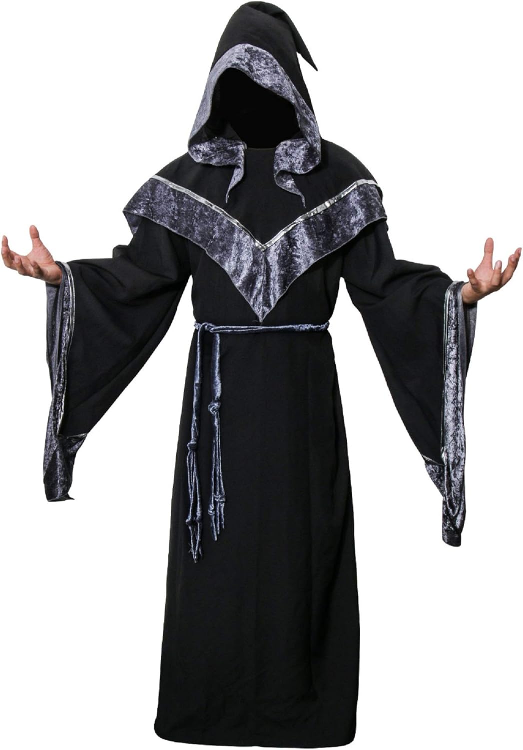 AMNPOLEN Mens Medieval Dark Mystic Sorcerer Robe Halloween Costume Hooded Cape Cosplay Cloak