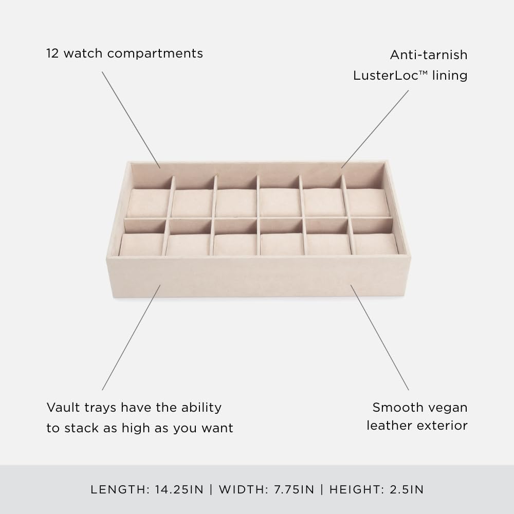 WOLF VAULT Watch Insert, Beige - Includes 12 Watch Compartments - Stackable - Anti-Tarnish LusterLoc Lining - Prevents Jewelry Discoloration + Tarnishing