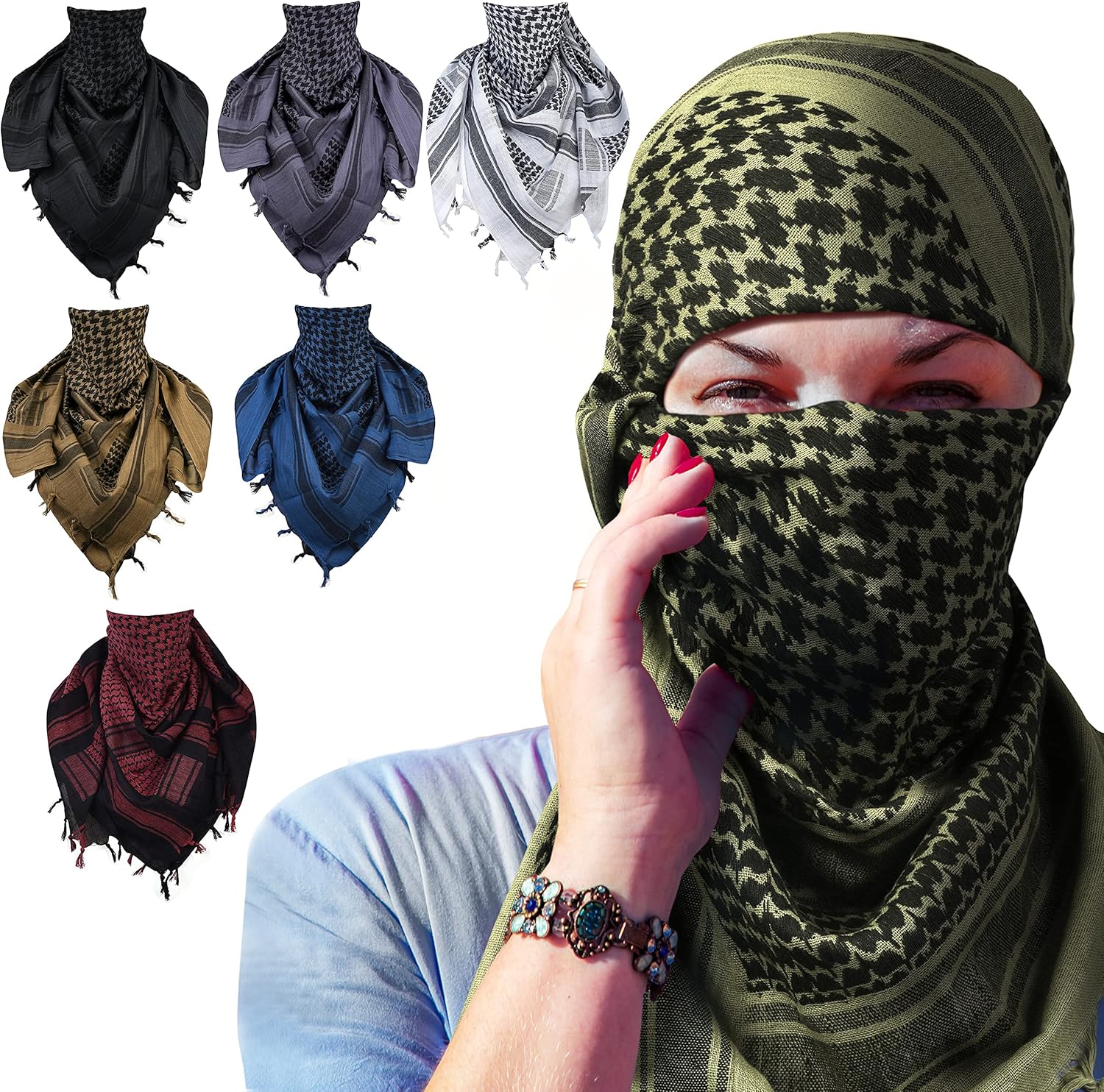 Shemagh Tactical Desert Military Head Scarf For Men Women Motorcycle Face Mask Biker Arab Wrap Summer Keffiyeh Cover Scarves (Green)�