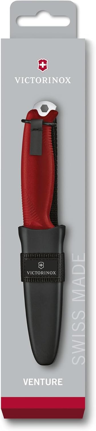 Victorinox Venture Fixed-Blade Full Tang Stainless Steel Outdoor Knife - Durable Red Handle, Swiss Army Knife That is Ideal for Camping and Survival