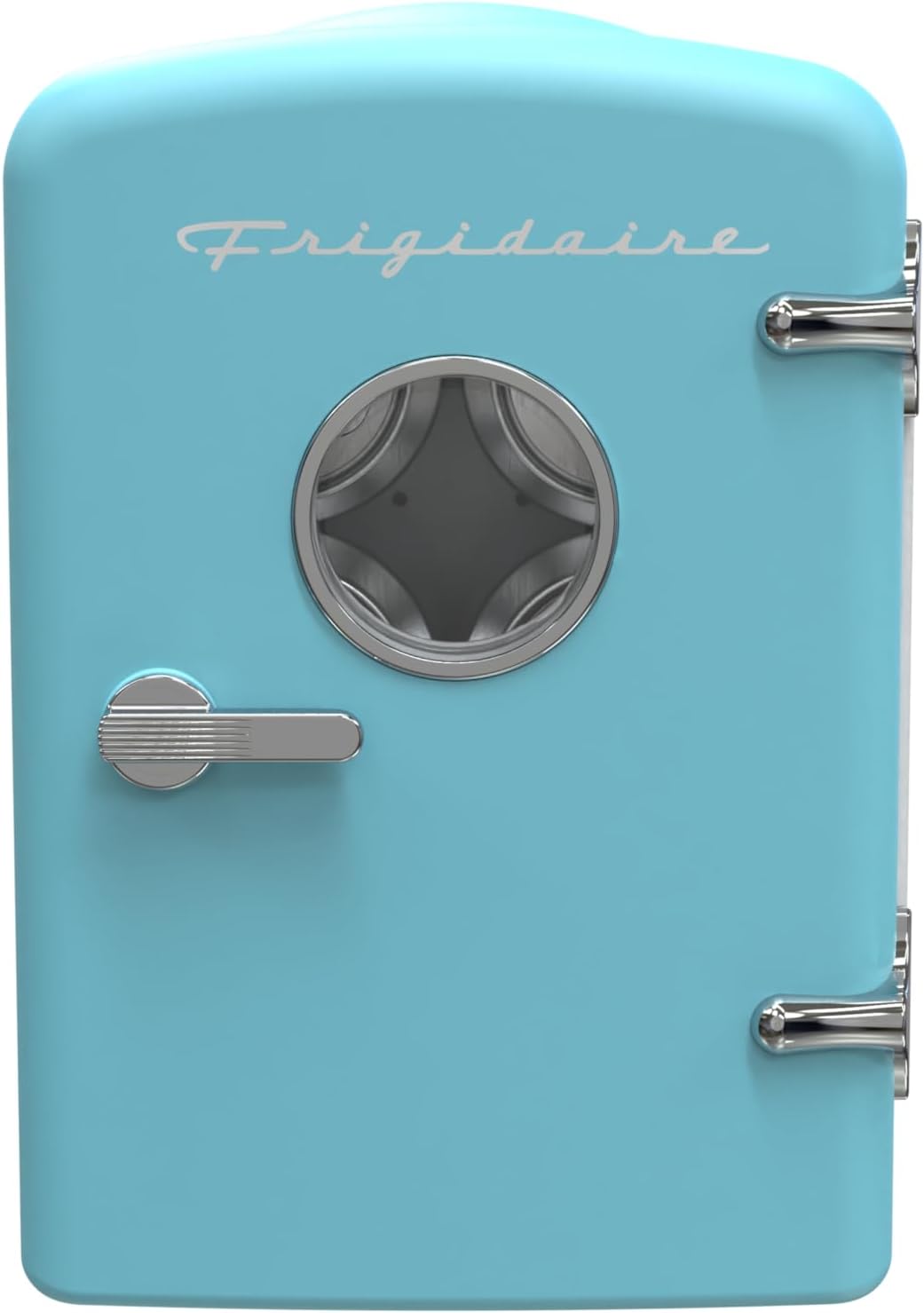 Frigidaire EFMIS171-BLACK Retro Mini Portable Personal Fridge - Ideal for Home, Office or Dorm - Features Active Cooling Can Holder on Top - Includes Carrying Handle, AC/DC Wall/Car Charger - Blue