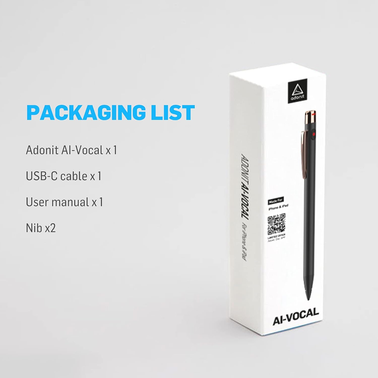 Adonit AI-Vocal Smart Voice Active Stylus. 9hrs of Recording While Writing, Rechargeable Pens for Meetings, Learning, Interviews. Compatible for iPhone, iPad Air, iPad Pro, iPad mini, iPad.
