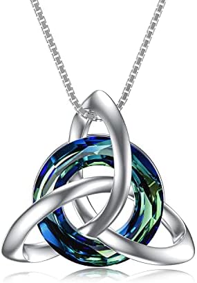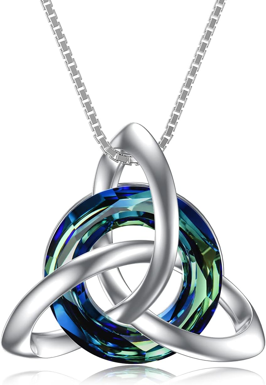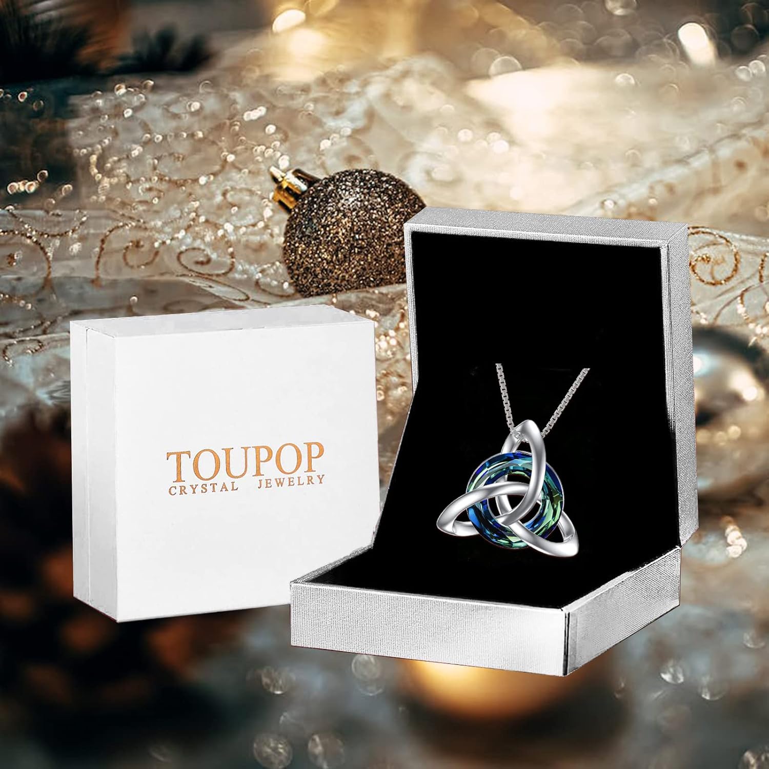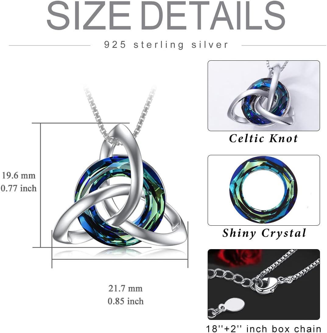 TOUPOP Celtic Knot Necklace for Women Sterling Silver Trinity Knot Pendant Necklaces with Crystal Irish Jewelry Birthday Gift for Her Wife Girlfriend Mom Daughter