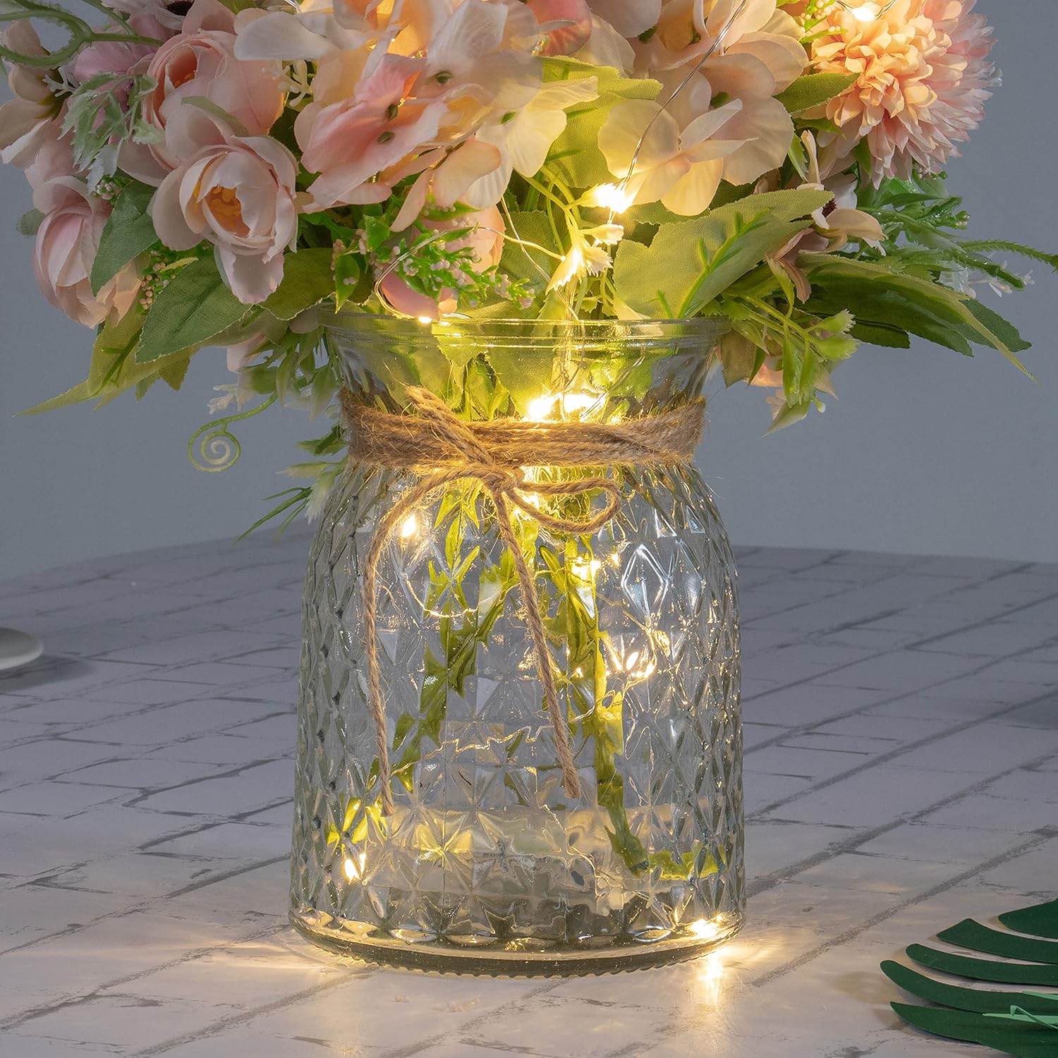 EASY TO SET UP- Put half of the led lights in the vase, and wrap the rest around the fake flowers. The LED lights have 8 remote control mode.